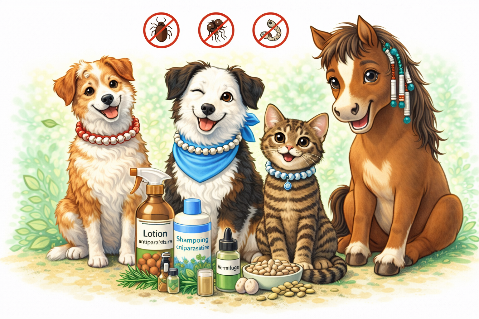 Les parasites externes et internes peuvent impacter le bien-être de votre animal au quotidien. Grâce à des solutions naturelles comme les colliers EM, les lotions antiparasitaires, les shampoings doux, les vermifuges naturels ou encore les graines de courge et les huiles essentielles, il est possible de les protéger efficacement tout en respectant leur organisme.