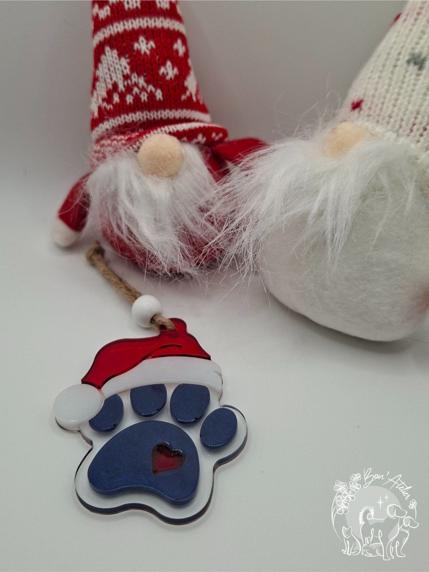 - Bonnet rouge & blanc, patte bleue nuit nacrée et coeur rouge _ Fond translucide