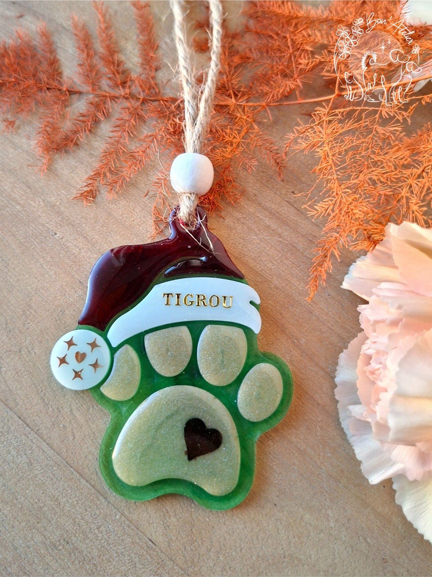 - Face avant de la boule : Nom inscrit sur le bonnet + sequins au choix