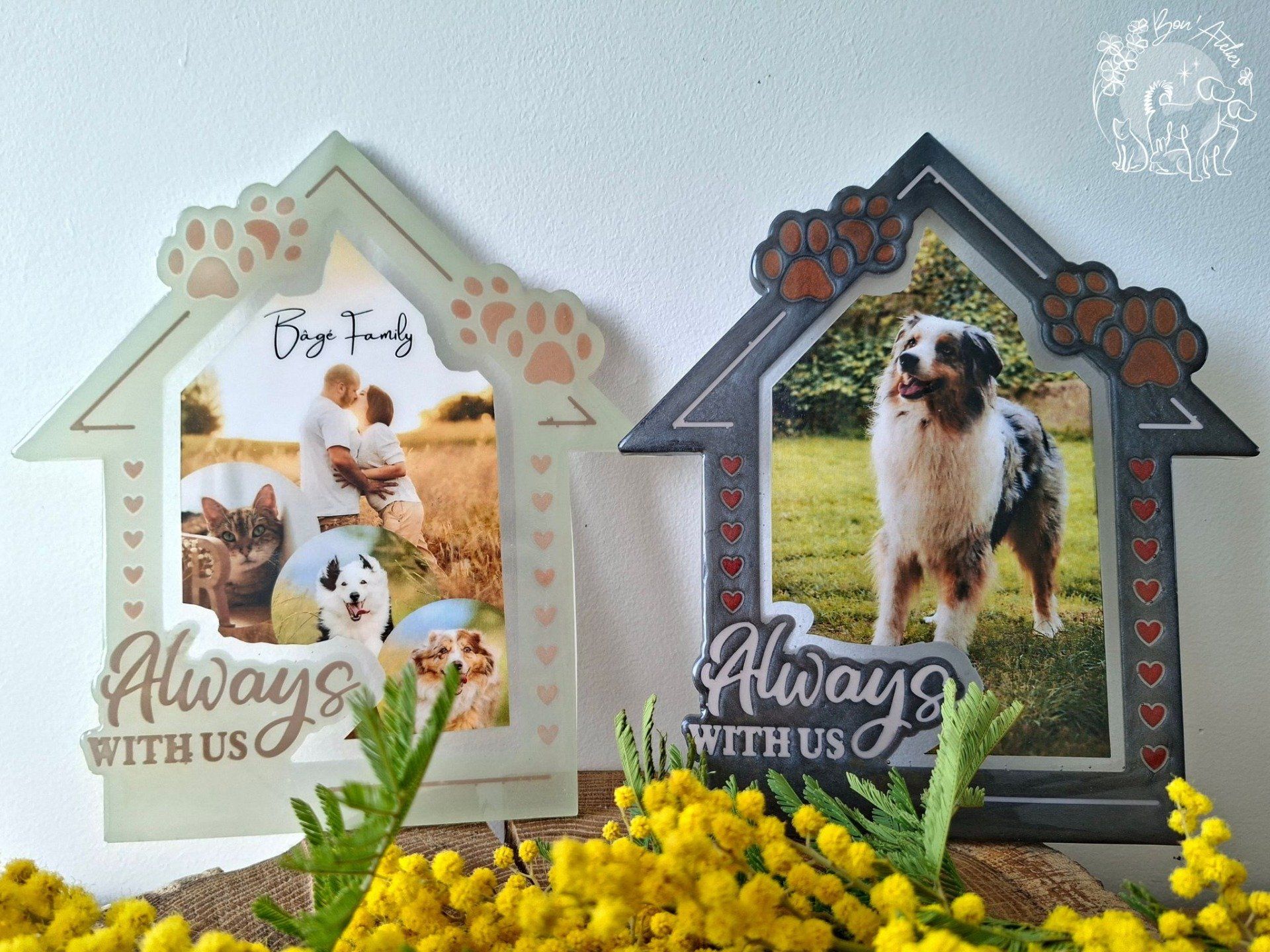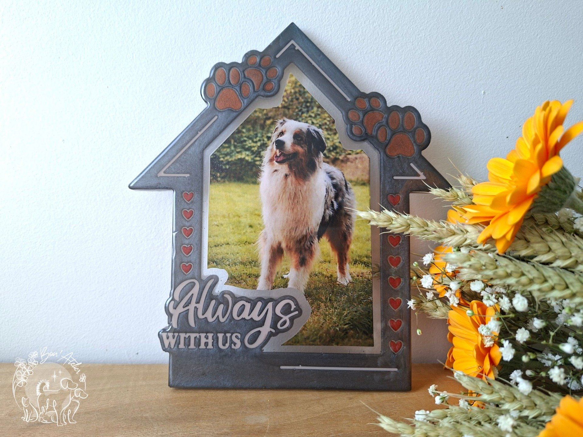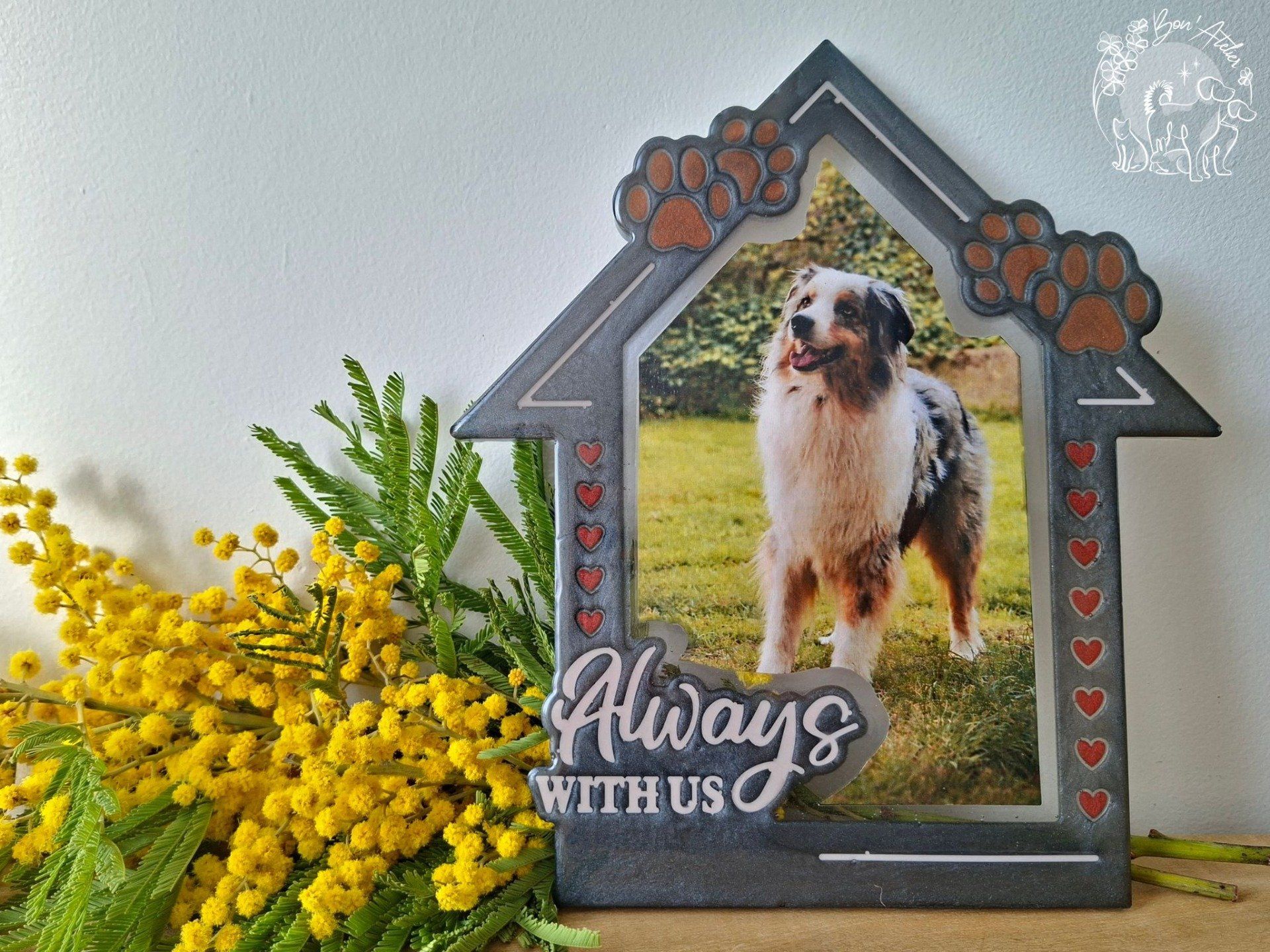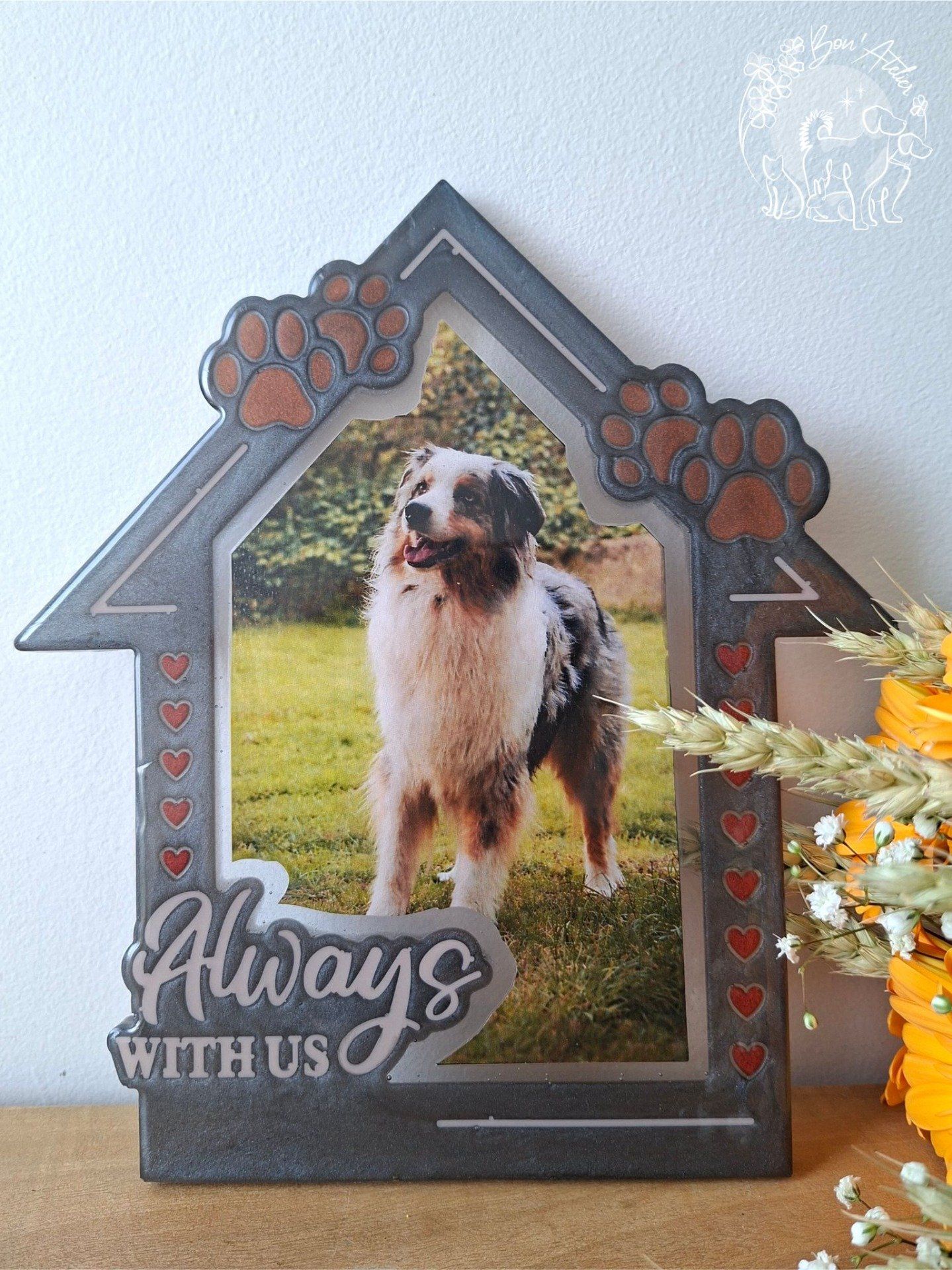 Cette création convient aussi bien pour célébrer un animal encore à vos côtés que pour honorer la mémoire d’un compagnon parti.