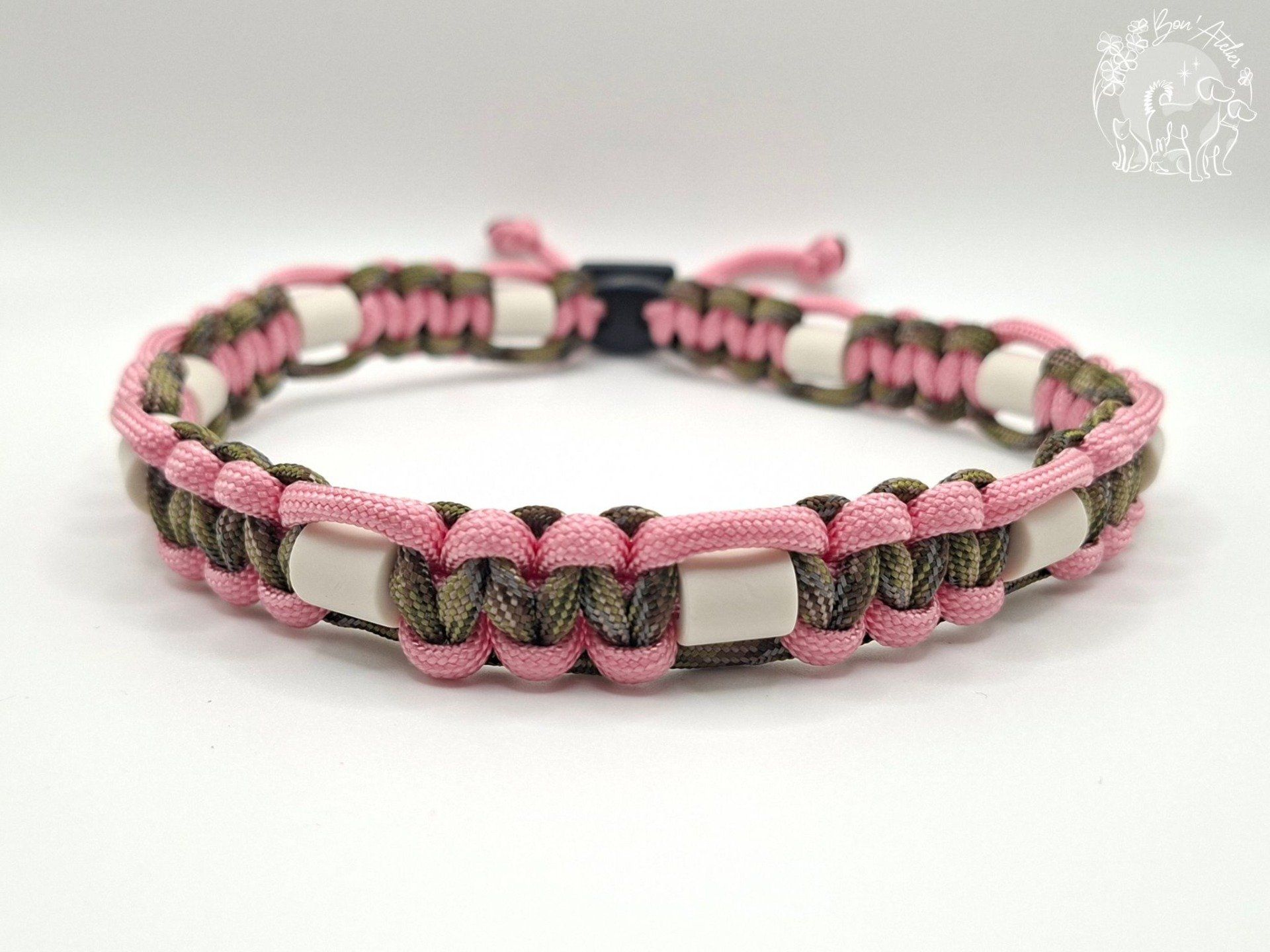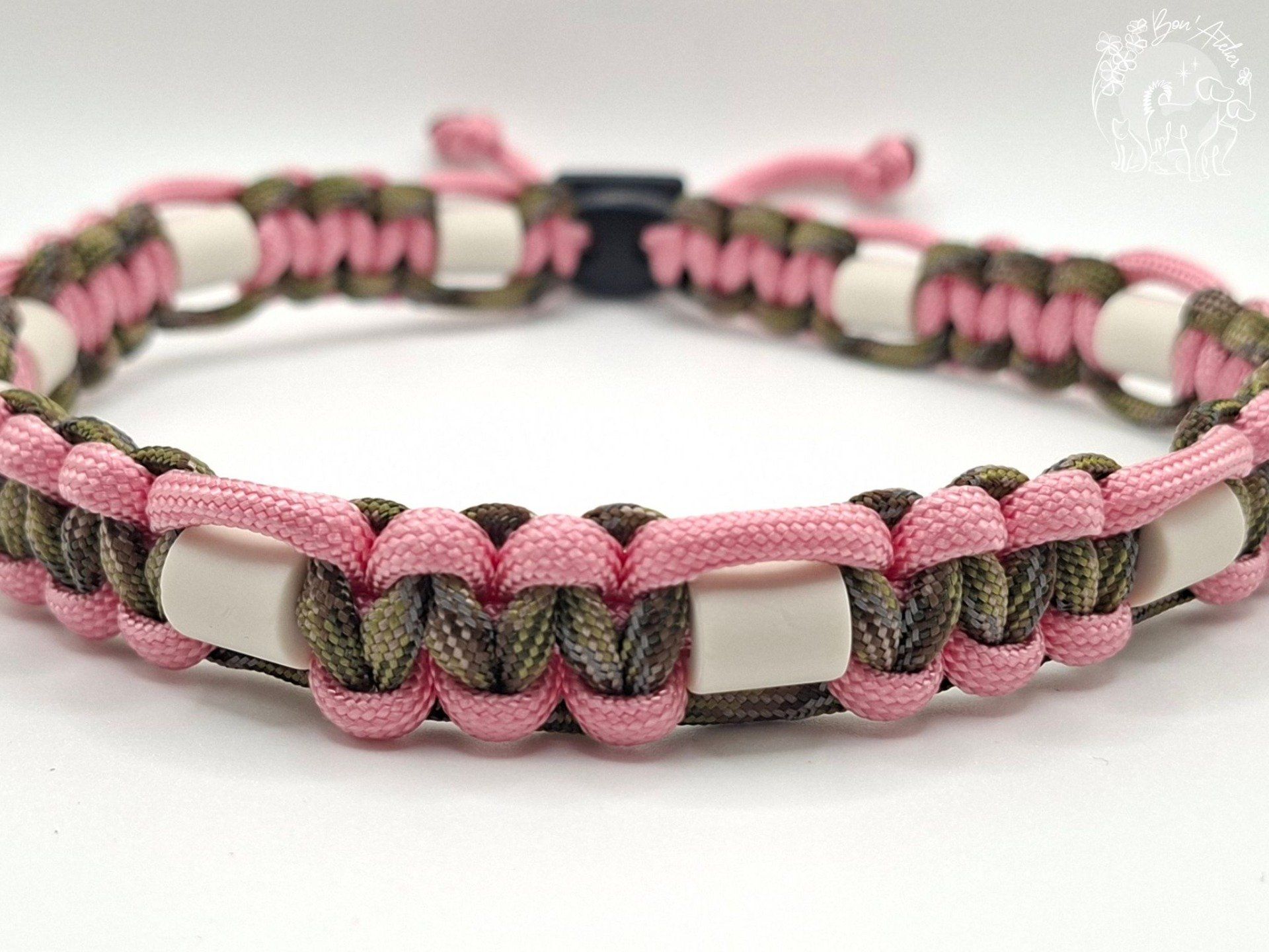 Le cordage est fait d'une gaine tressée avec 7 brins intérieurs & est conçu pour avoir une résistance très importante. Néanmois, veuillez noter qu'aucun collier n'est indestructible. Il n'est pas conçu pour être un collier de balade où accrocher une laisse.