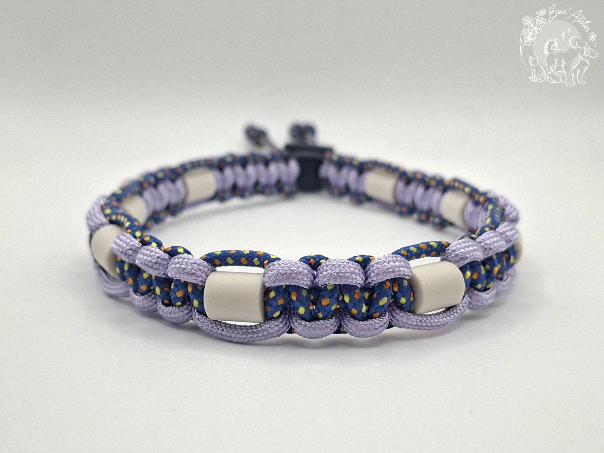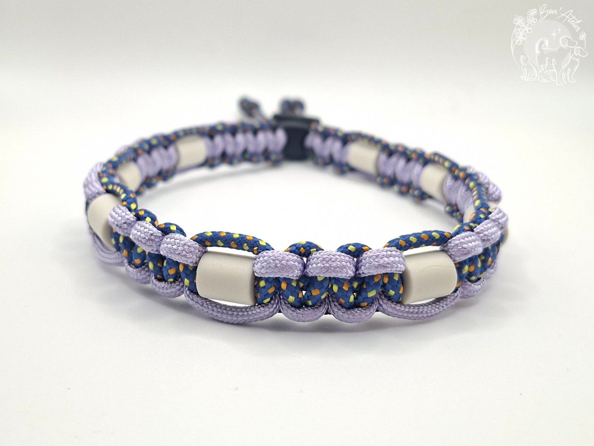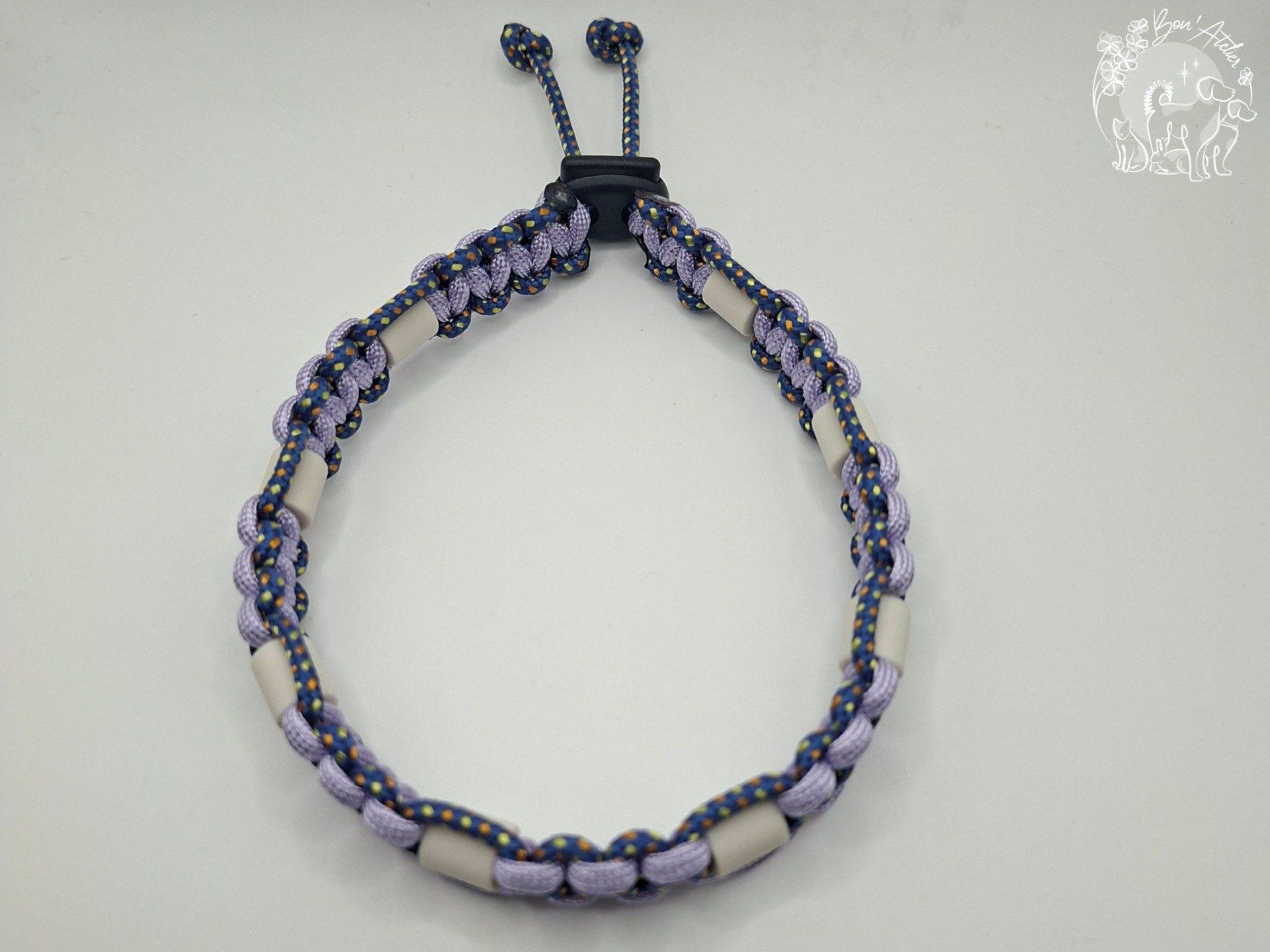 Le cordage est fait d'une gaine tressée avec 7 brins intérieurs & est conçu pour avoir une résistance très importante. Néanmois, veuillez noter qu'aucun collier n'est indestructible. Il n'est pas conçu pour être un collier de balade où accrocher une laisse.