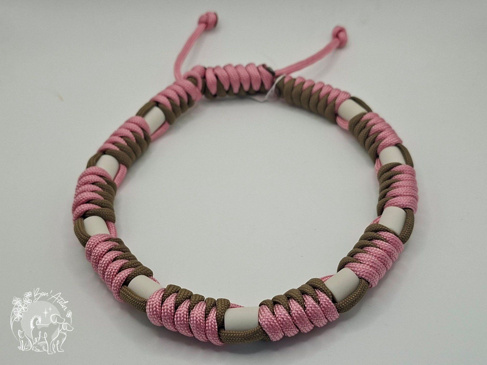 Le cordage est fait d'une gaine tressée avec 7 brins intérieurs & est conçu pour avoir une résistance très importante. Néanmois, veuillez noter qu'aucun collier n'est indestructible. Il n'est pas conçu pour être un collier de balade où accrocher une laisse.