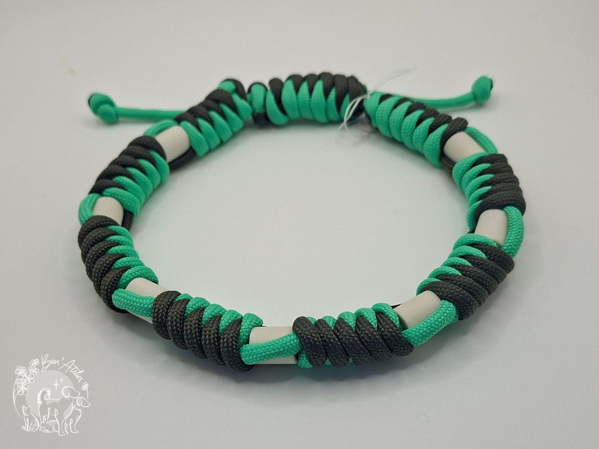 Le cordage est fait d'une gaine tressée avec 7 brins intérieurs & est conçu pour avoir une résistance très importante. Néanmois, veuillez noter qu'aucun collier n'est indestructible. Il n'est pas conçu pour être un collier de balade où accrocher une laisse.