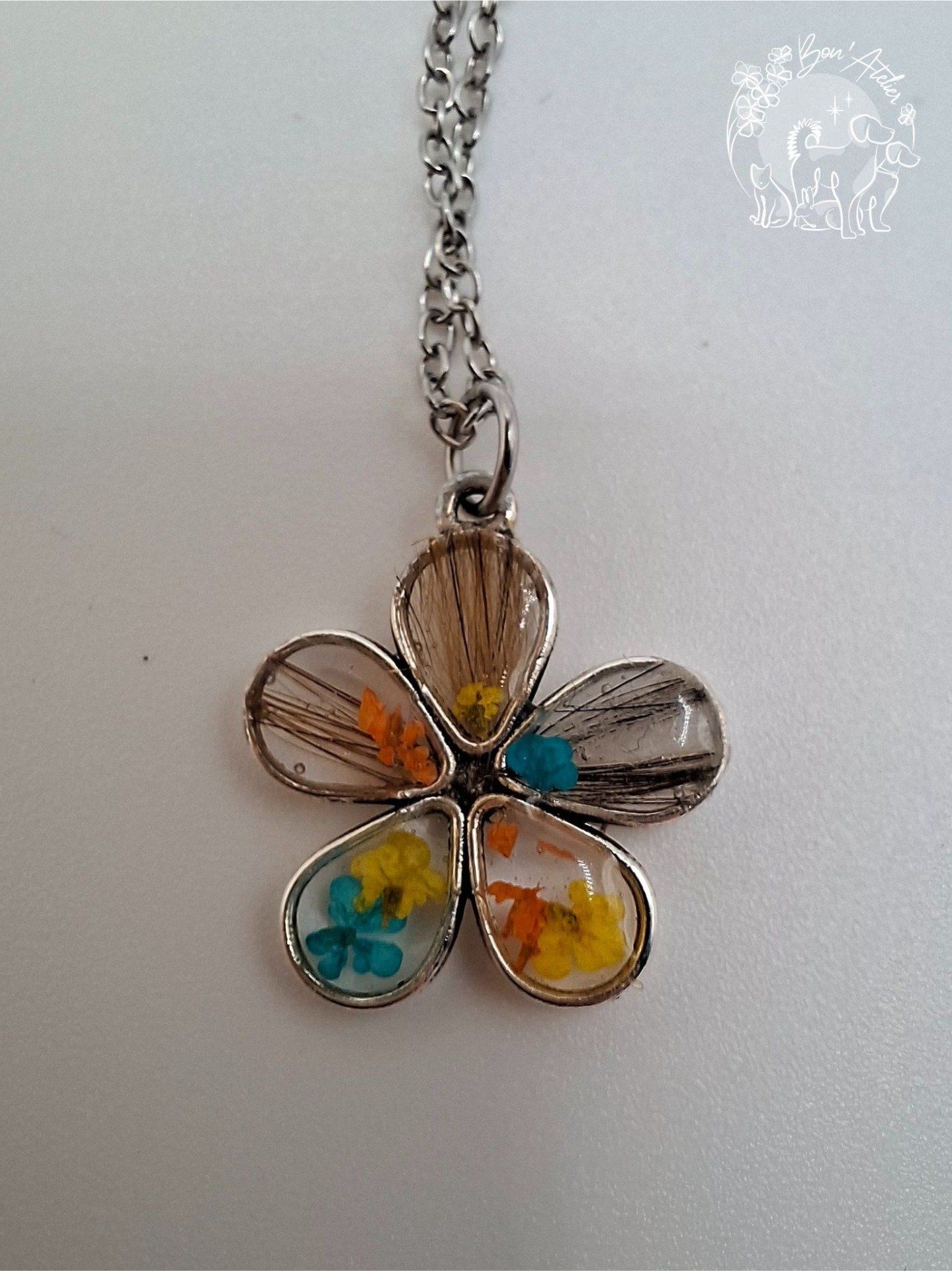 - Fond translucide avec 5 pétales : 5 possibilités de remplissage ! Merci de m'indiquer pétale par pétale, ce que vous souhaitez à l'intérieur. Il y a 5 pétales, vous pouvez m'envoyer les poils / cendres d'un seul animal et choisir de remplir le nombre de pétales souhaitées avec. Ou bien, une pétale = un animal !