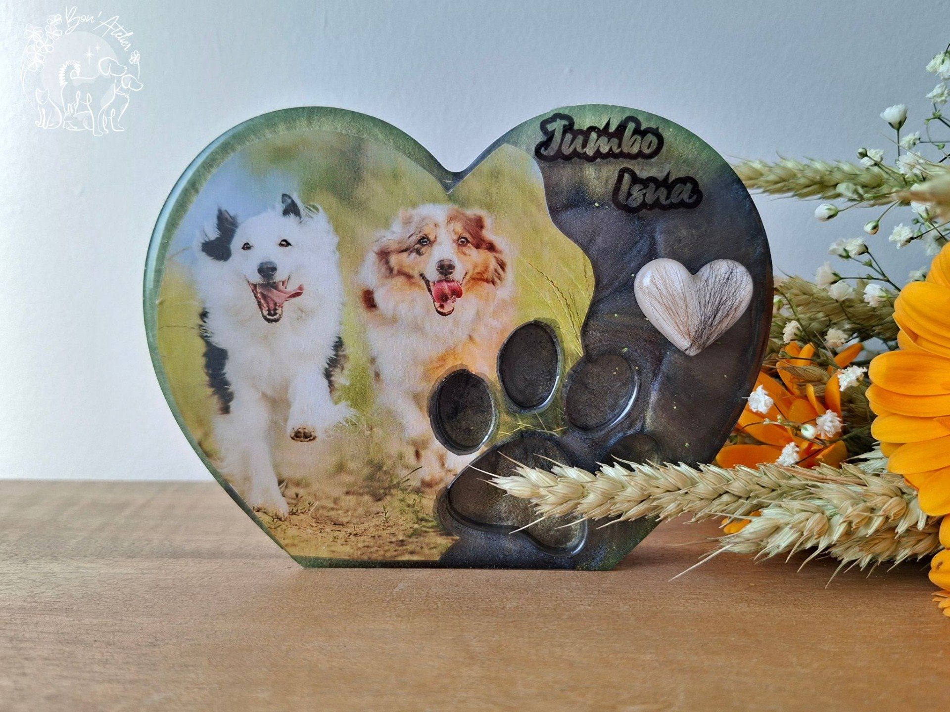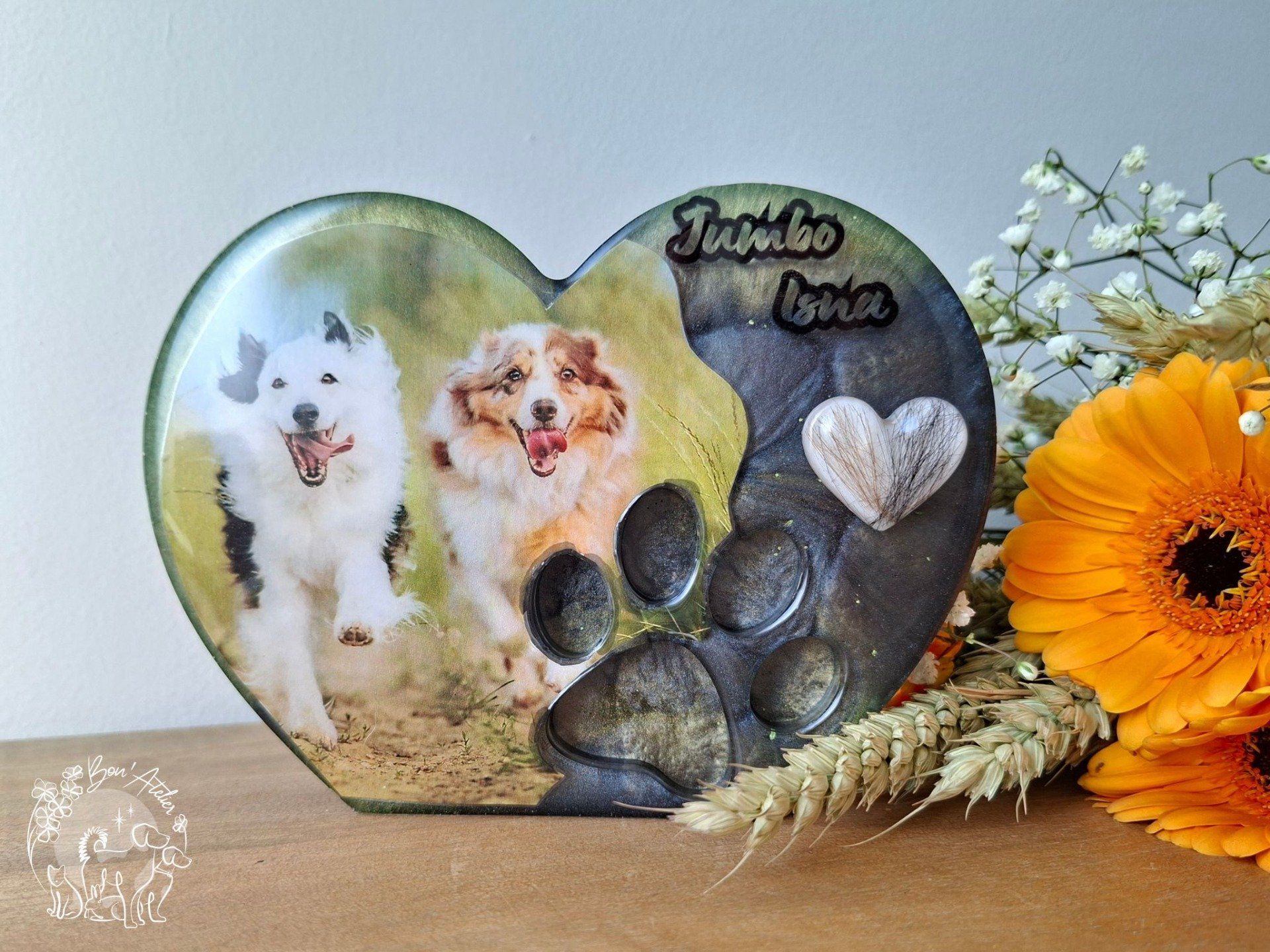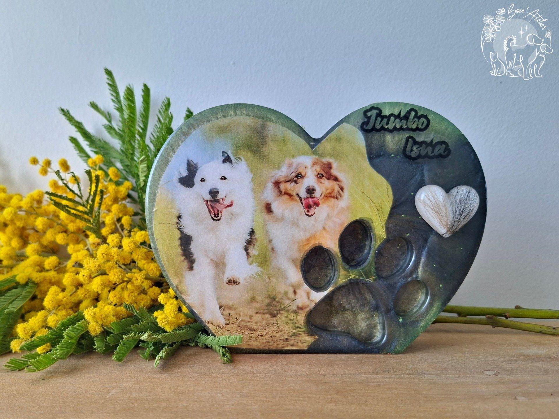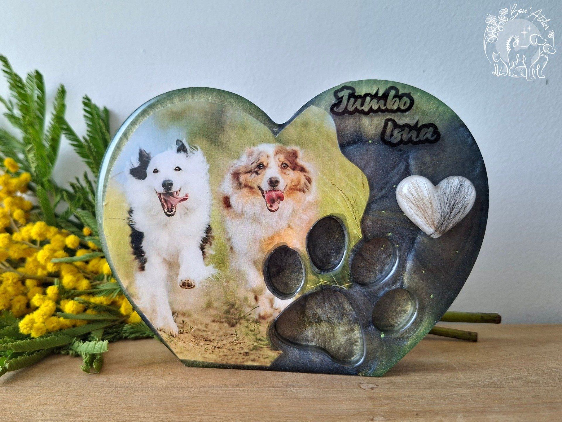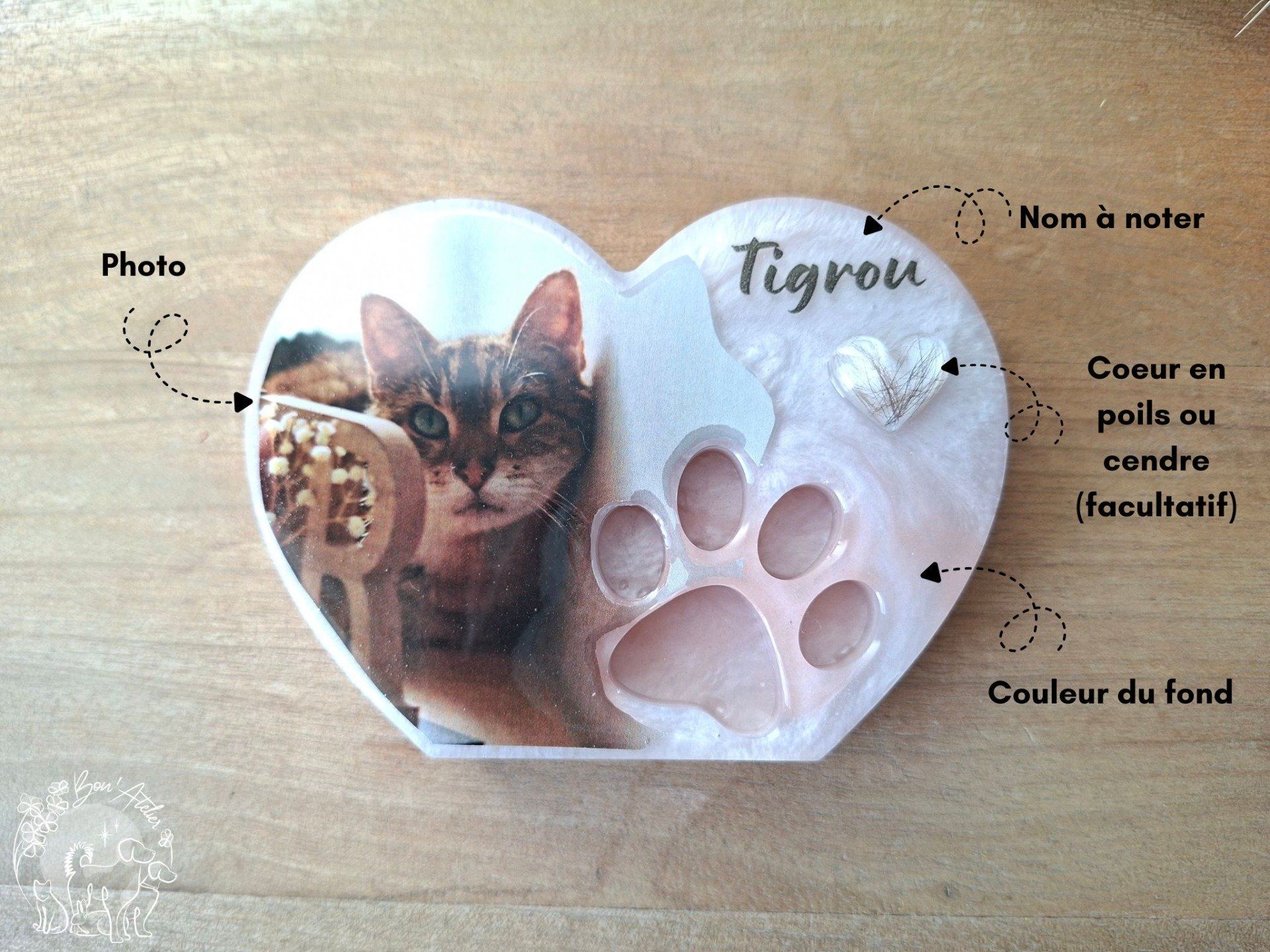 Un petit cœur réalisé avec les poils ou cendres de votre compagnon peut être ajouté en option, pour une touche encore plus personnelle.