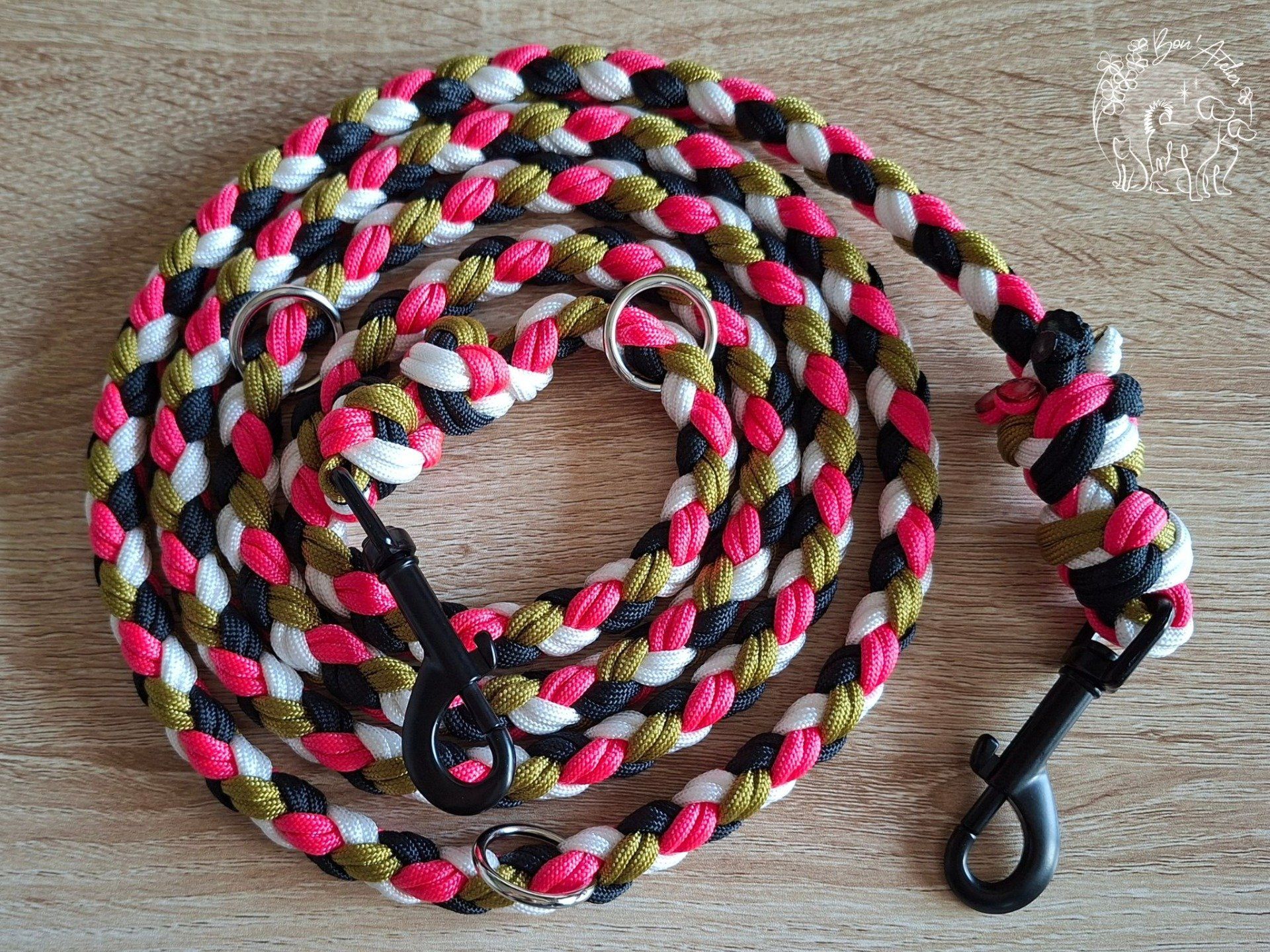 Notre laisse 3 points ou multiposition est faite en Paracord type III, tressée, de notre collection "Sparrow".