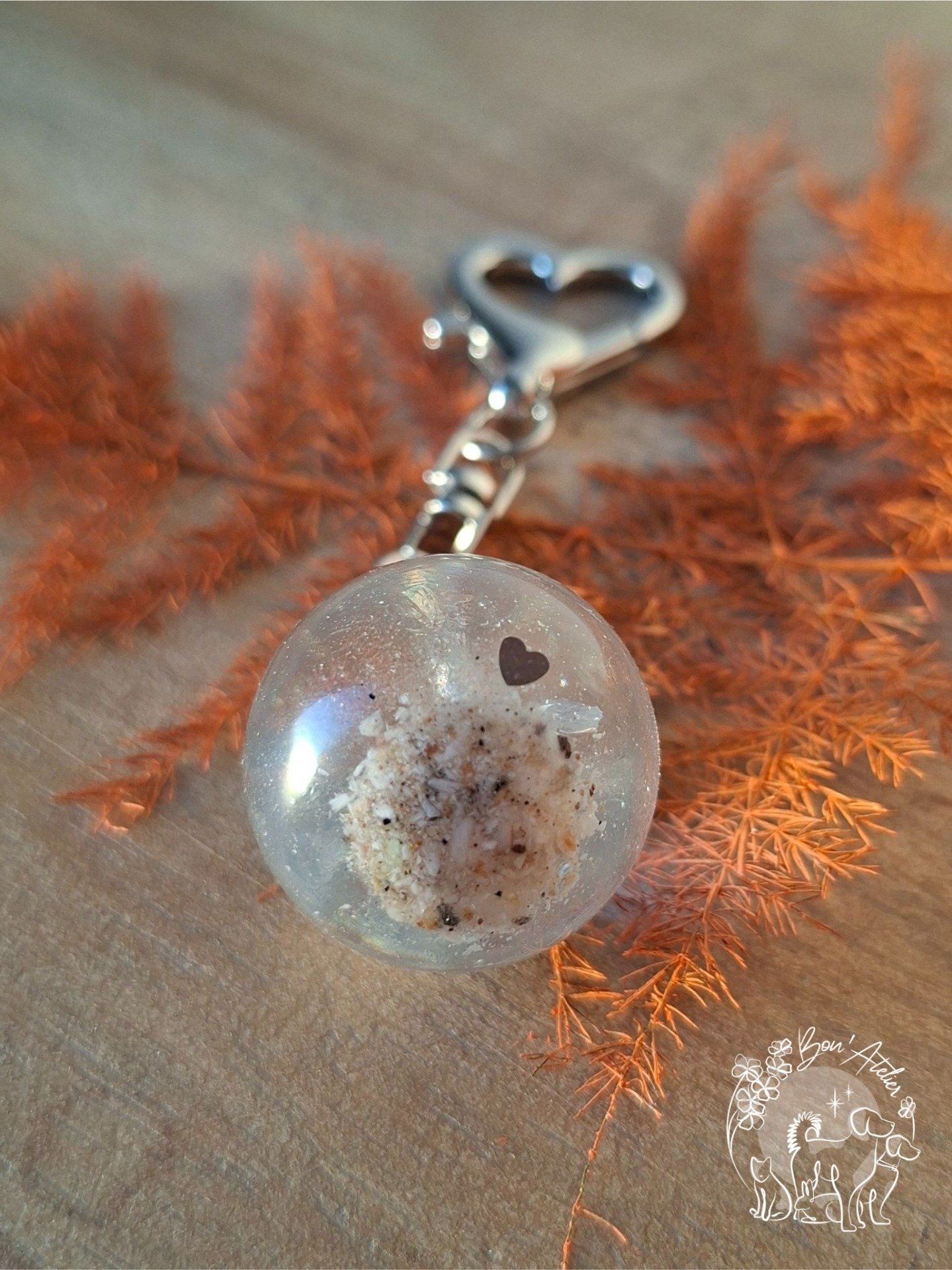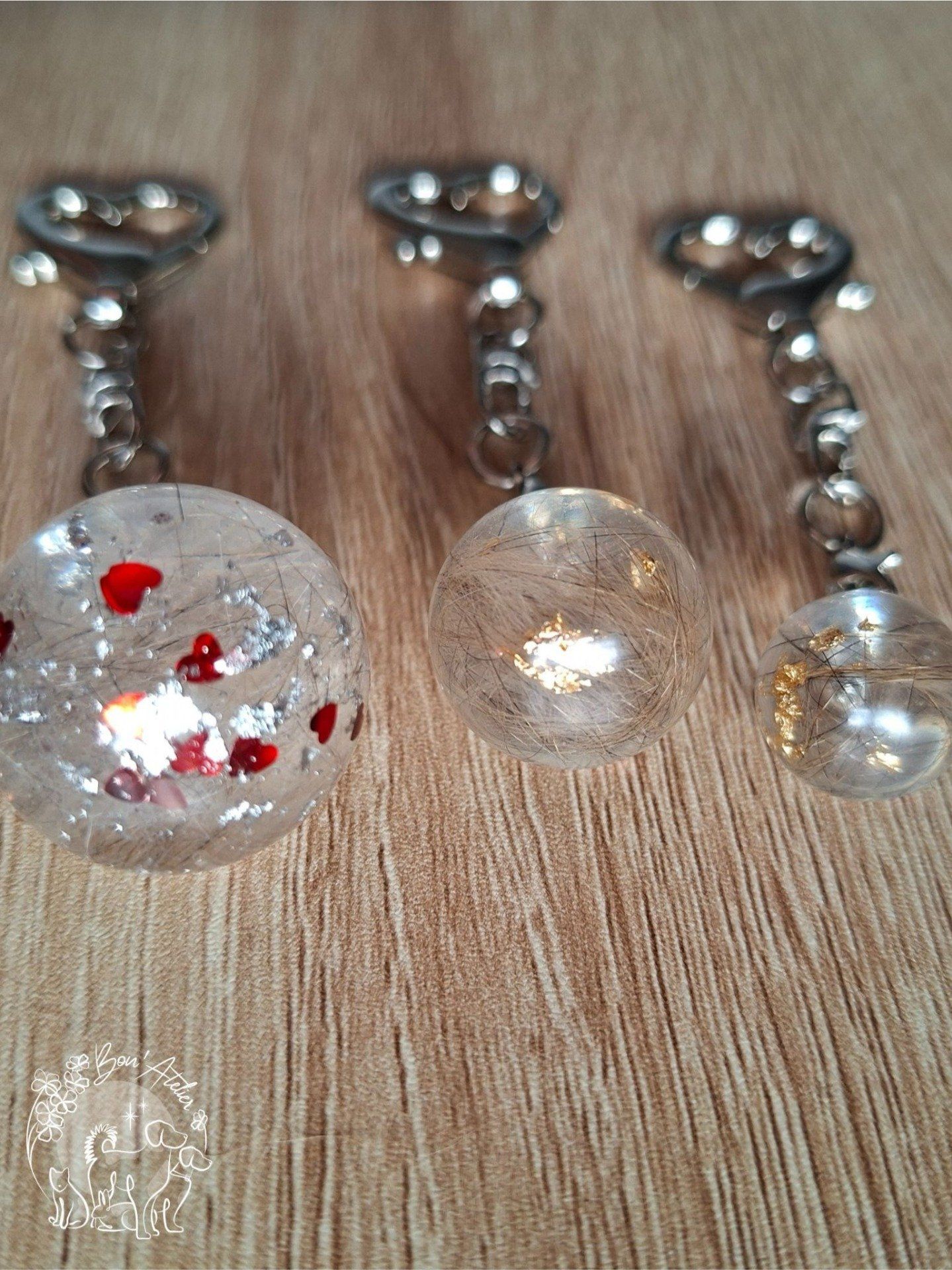 Porte-clef avec les poils de vos Loulou en résine époxy. 3 tailles disponibles.